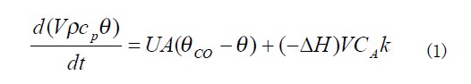 對化學反應釜,根據(jù)化學反應中的熱量平衡關系,可知:反應系統(tǒng)內(nèi)熱量的儲蓄量變化率=±單位時間內(nèi)化學反應的熱效應(吸熱反應?。?放熱反應取+)是單位時間內(nèi)與外界熱交換量(向外散熱取-,從外界吸收熱量取+)。假設反應釜夾套內(nèi)容積和密度都保持不變,忽略熱交換過程中的熱量損失,可得以下方程:反應釜內(nèi)的熱量平衡算式