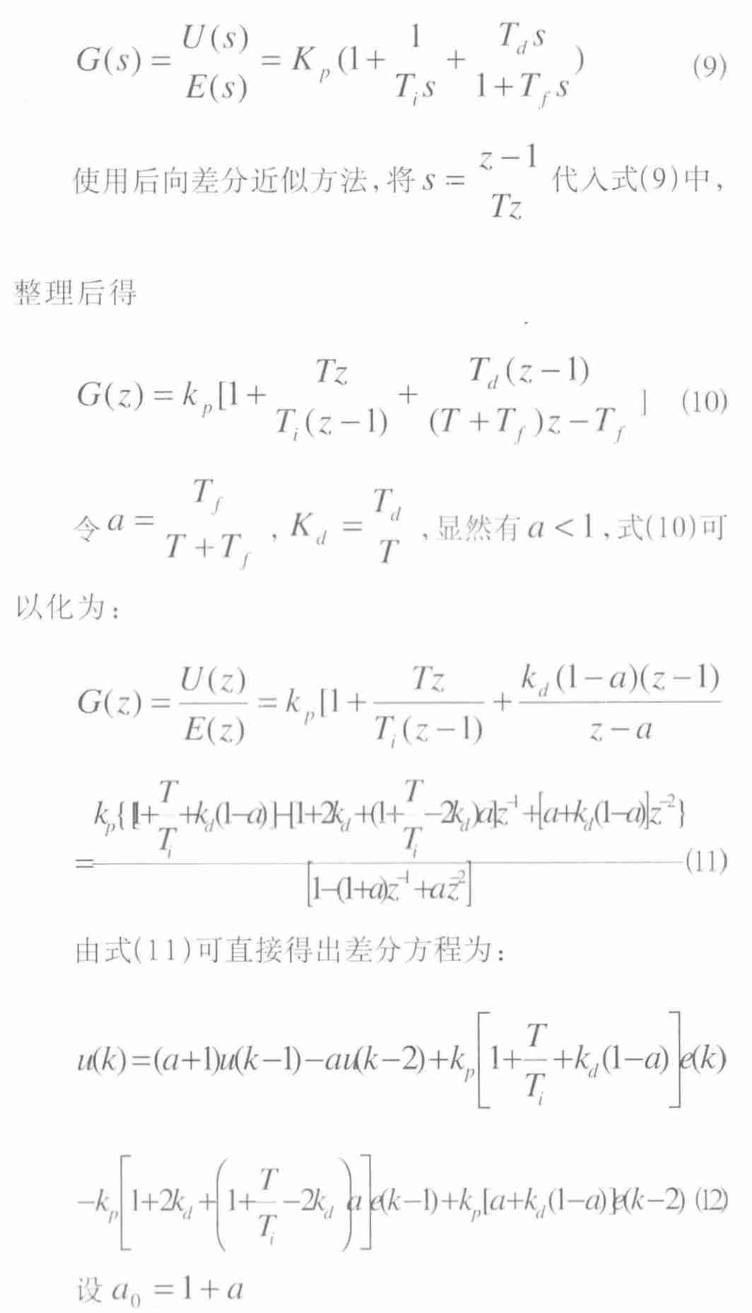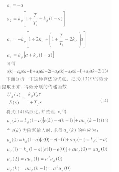 為了適應不同被控對象,工程上有多種改進的PID算法。本論文采用一種不完全微分的PID算法。這種方法是在標準PID算法的微分環(huán)節(jié)上加上一個一階慣性環(huán)節(jié),它可以克服完全微分的缺點,可更好地完成反應釜穩(wěn)定控制的需要,改進后的傳遞函數(shù)為: