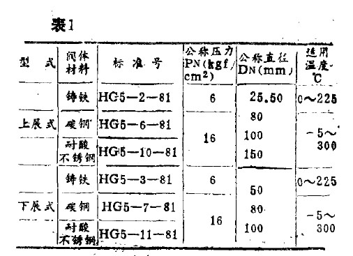 截止型放料閥是目前的4準(zhǔn)放料閥,1967年起編入化工部部頒標(biāo)準(zhǔn),它是直接安裝于反應(yīng)釜底部的專用放料閥門,其關(guān)閉件一一閥瓣是沿放料口通道中心線作上下移動(dòng)的,按其開啟時(shí)的閥瓣運(yùn)動(dòng)方向不同,分為上展式和下展式二種,不論是上展式或下展式,在關(guān)閉狀態(tài)時(shí),都能使閥瓣頂面與釜底面大致吻合,不存在沉積料液的死角。圖1為下展式放料閥的裝配簡圖,此類放料閥按化工部標(biāo)準(zhǔn),閥體可采用鑄鐵、鑄鋼和耐酸不銹鋼三種材質(zhì),其中耐酸不銹鋼放料閻按制造工藝又分成鑄造閥休和焊接閥體兩種形式。上述主要型式的標(biāo)準(zhǔn)號性能參數(shù)見表1。