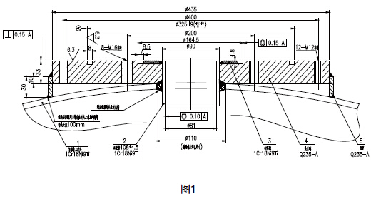2、釜口法蘭設(shè)計(jì)裝配圖見(jiàn)圖1。